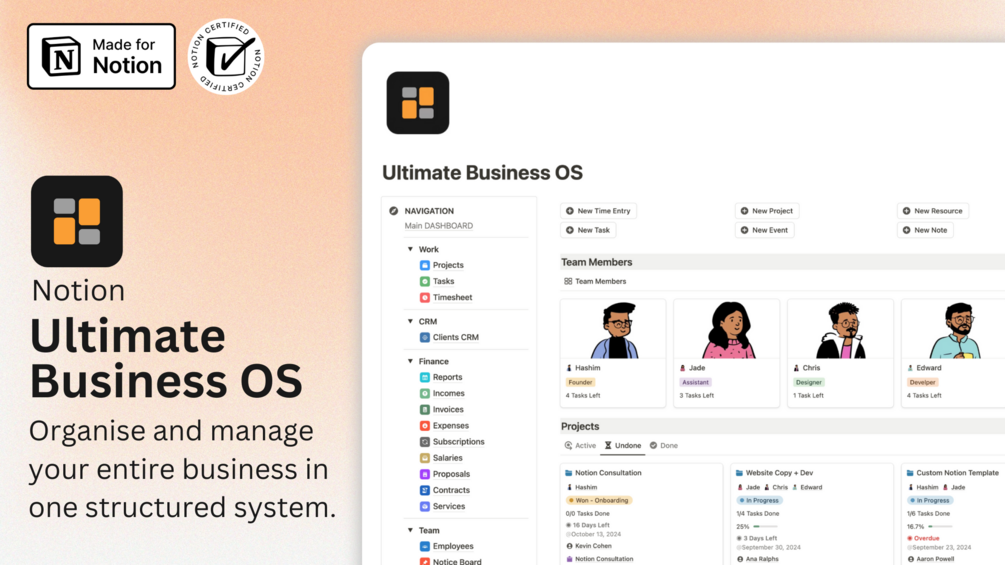The Ultimate Business OS centralises all business processes in one place, no more time wasted trying to manage your business over multiple systems.