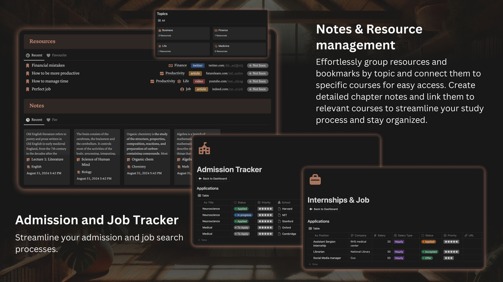 - Resources Management: 📂 Store and organise important documents, links, and resources for your studies. Create folders for different subjects, courses, or projects.